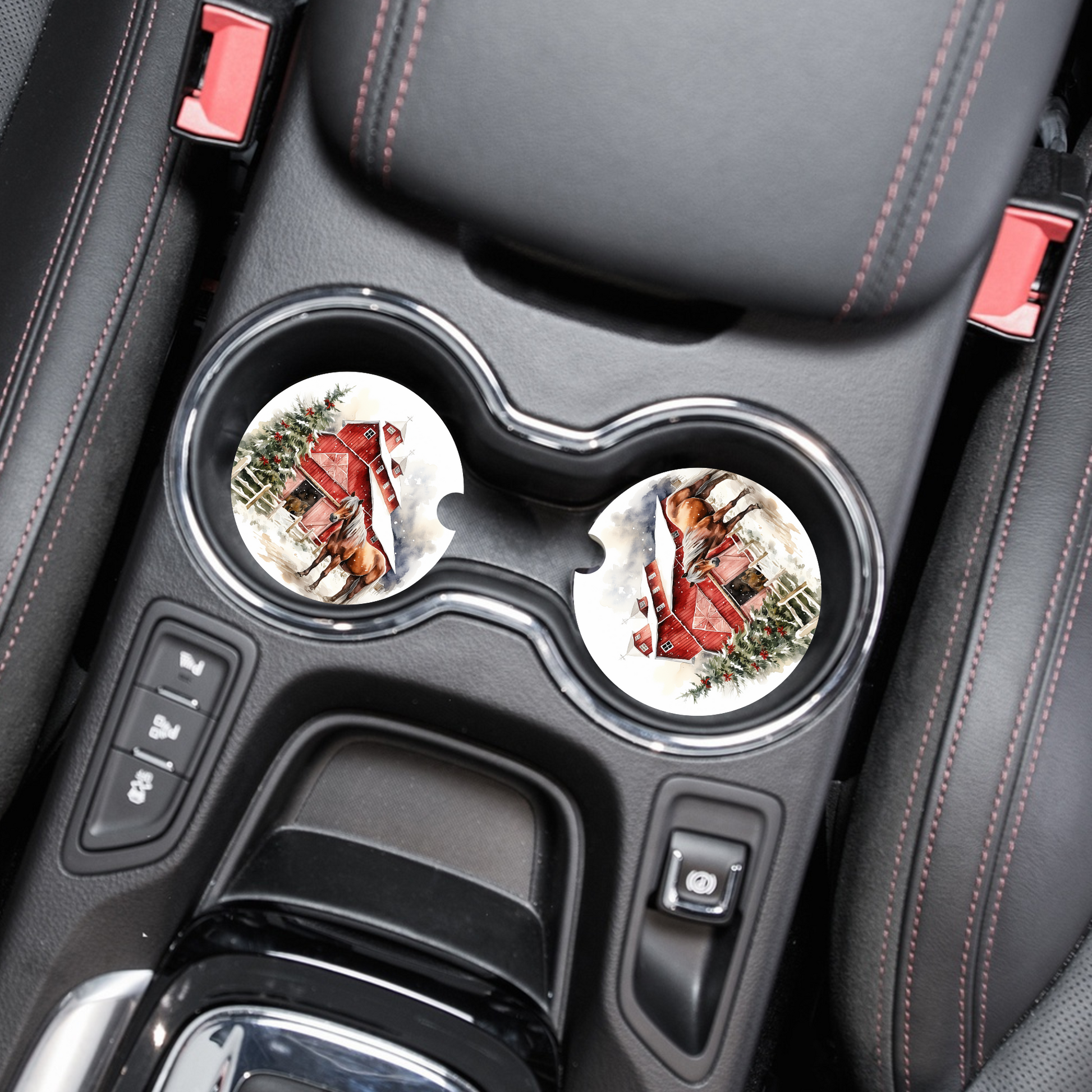Infuse your car with rustic holiday charm using the Frosted Stable Glow Car Coaster. Featuring a snow-dusted barn and a noble horse standing guard, this design glows with festive warmth while protecting your cup holder from spills. Ideal for those who appreciate classic country spirit throughout the holiday season.